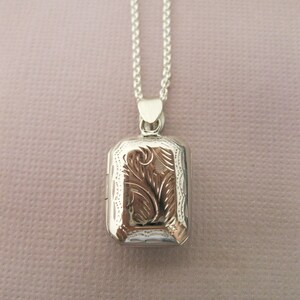 Engraved Small Rectangle Locket in Sterling Silver, Vintage Look Hinged ...