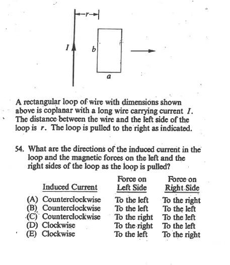 A long straight wire carries a current I. A rectangular wire loop of ...