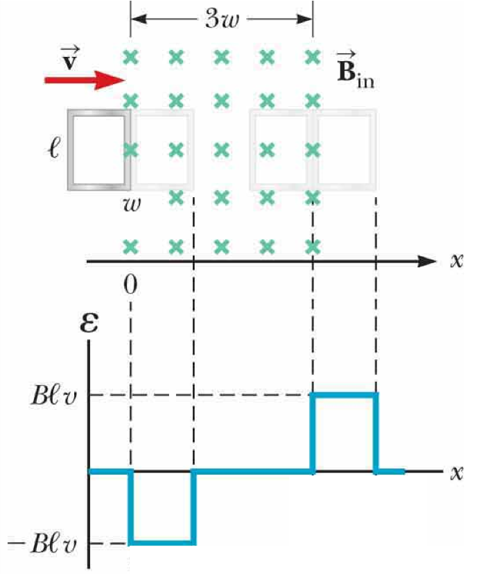 Q7 (25pt). A rectangular loop of dimensions l and w moves with constant v..