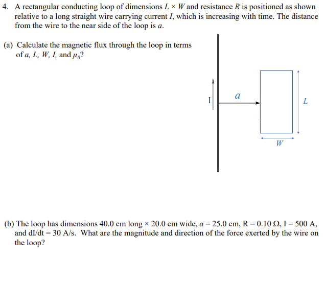 Solved 4. A rectangular conducting loop of dimensions L x W | Chegg.com