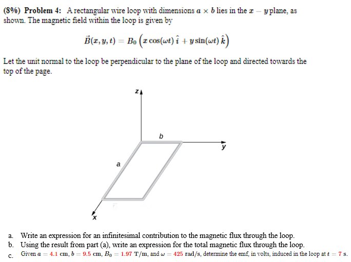 Solved A rectangular wire loop with dimensions a×ba×b lies | Chegg.com