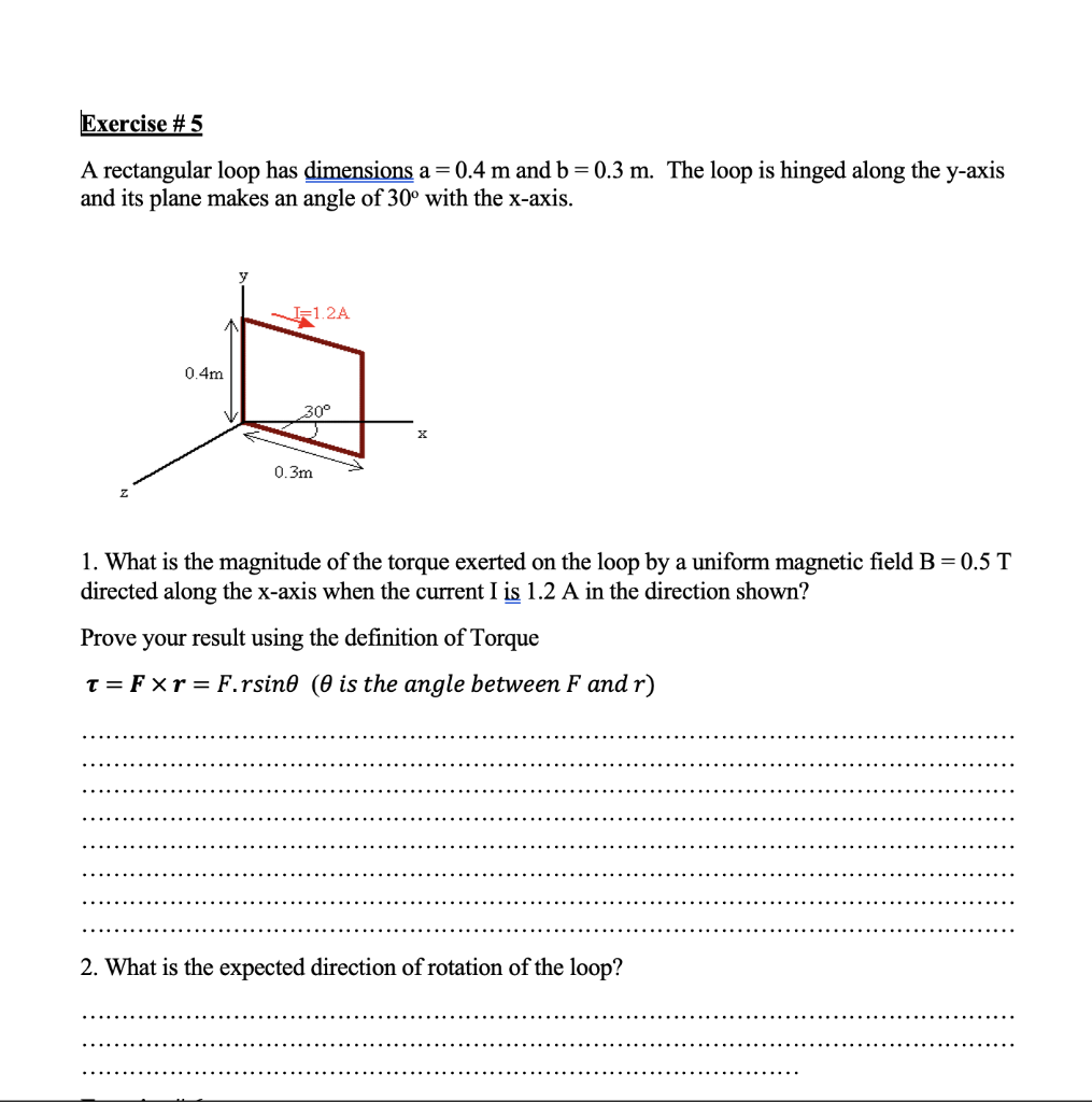Solved Exercise # 5 A rectangular loop has dimensions a=0.4 | Chegg.com