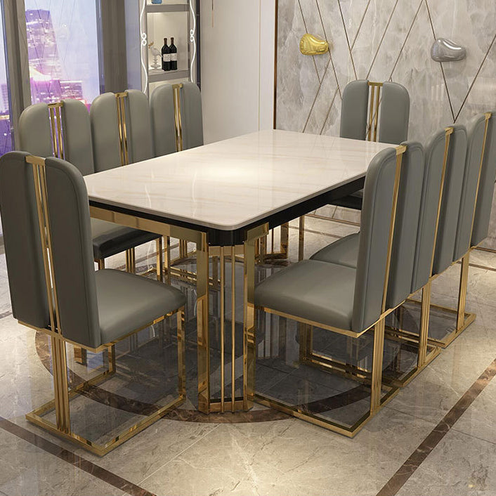 Rectangle Metal Base Table Glam Style Dining Table with 4 Legs - Clearhalo