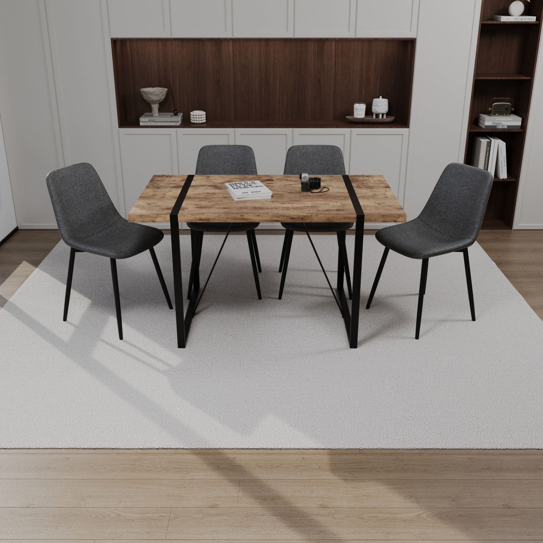 Turin Metal Base Rectangle Dining Table with Laminate Top in Planked ...