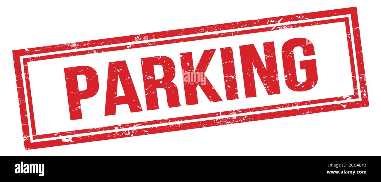 PARKING red grungy rectangle stamp sign Stock Photo - Alamy