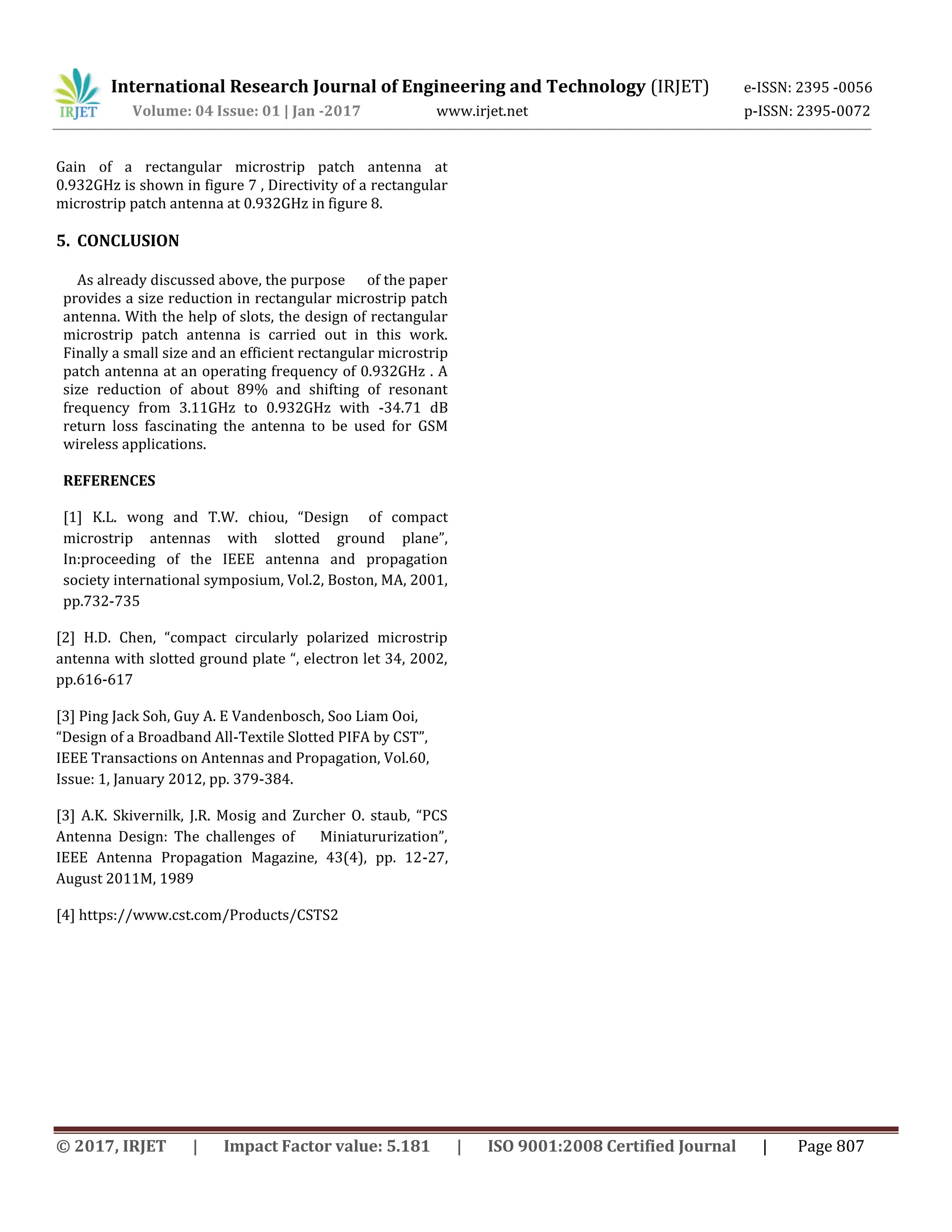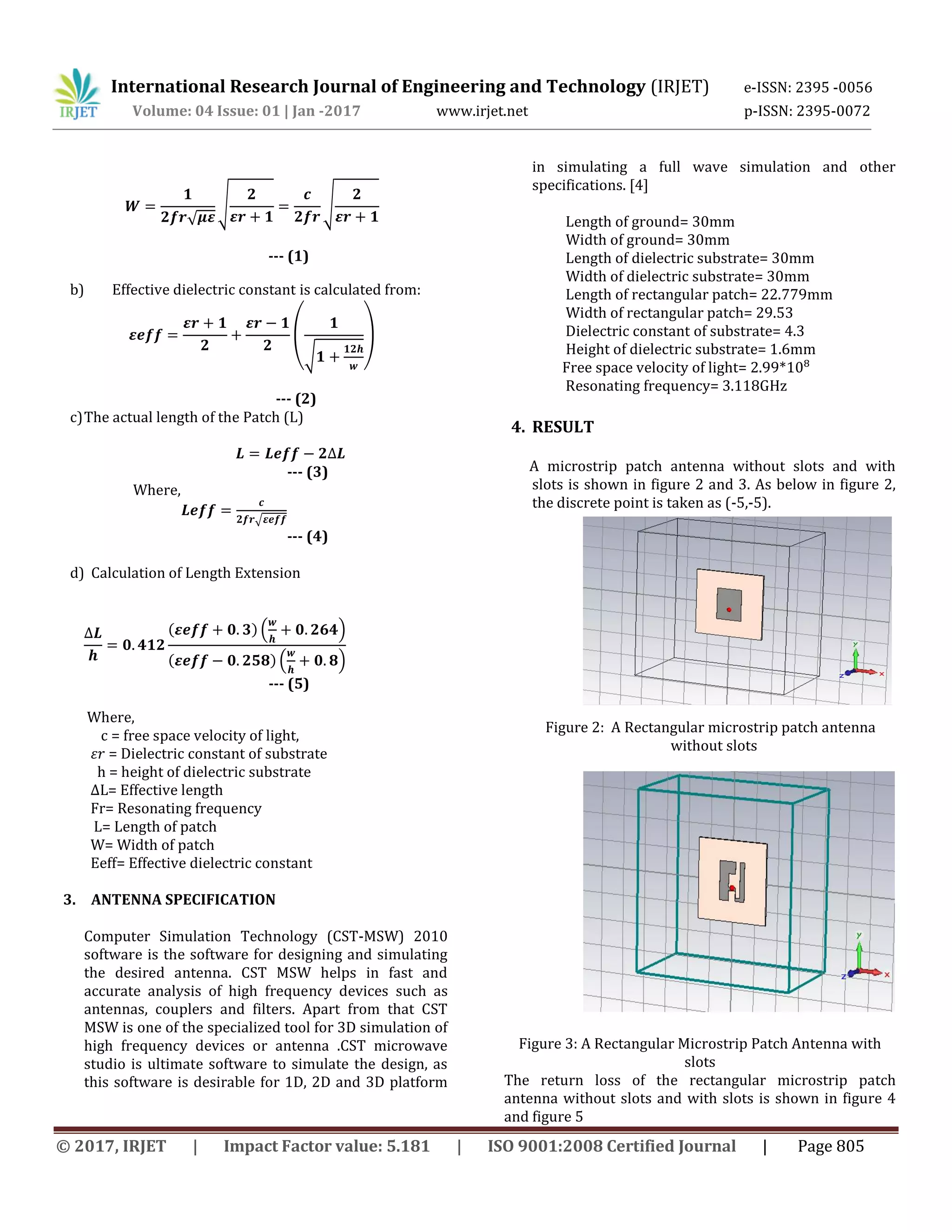DESIGN & PARAMETRIC STUDY OF RECTANGULAR SLOT MICROSTRIP PATCH ANTENNA ...