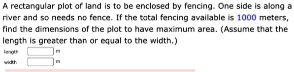 SOLVED: A rectangular plot of land is to be enclosed by a fence ...