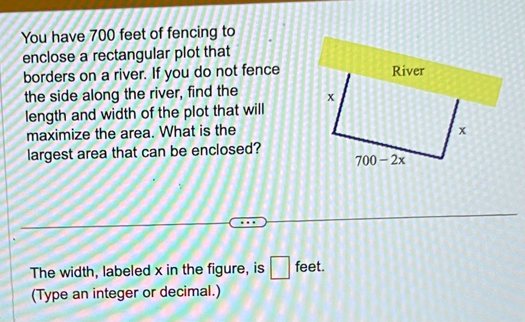 SOLVED: You have700 feet of fencing to enclose a rectangular plot that ...