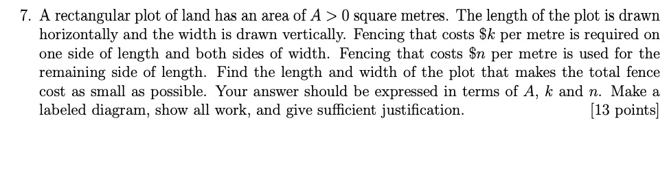 Solved 7. The best fencing plan A rectangular plot of | Chegg.com