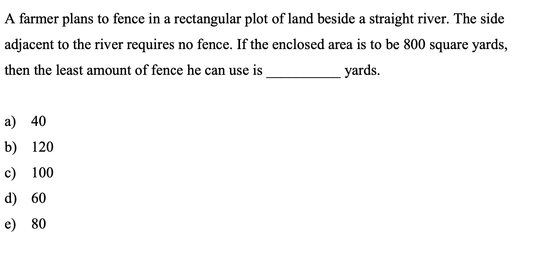 A rectangular plot of farmland will be bounded on one side by arivwr ...