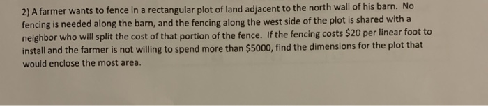 Solved 2) A farmer wants to fence in a rectangular plot of | Chegg.com