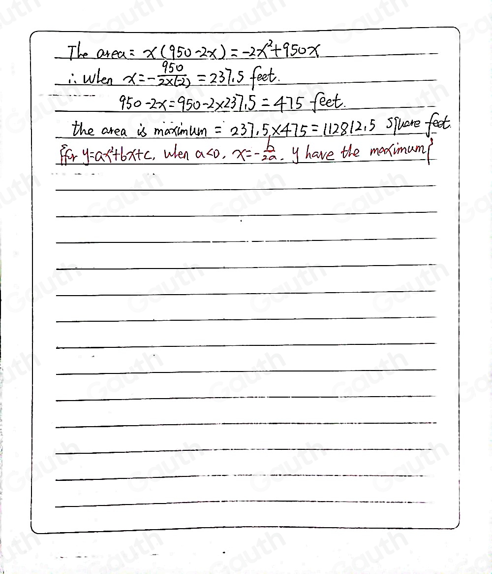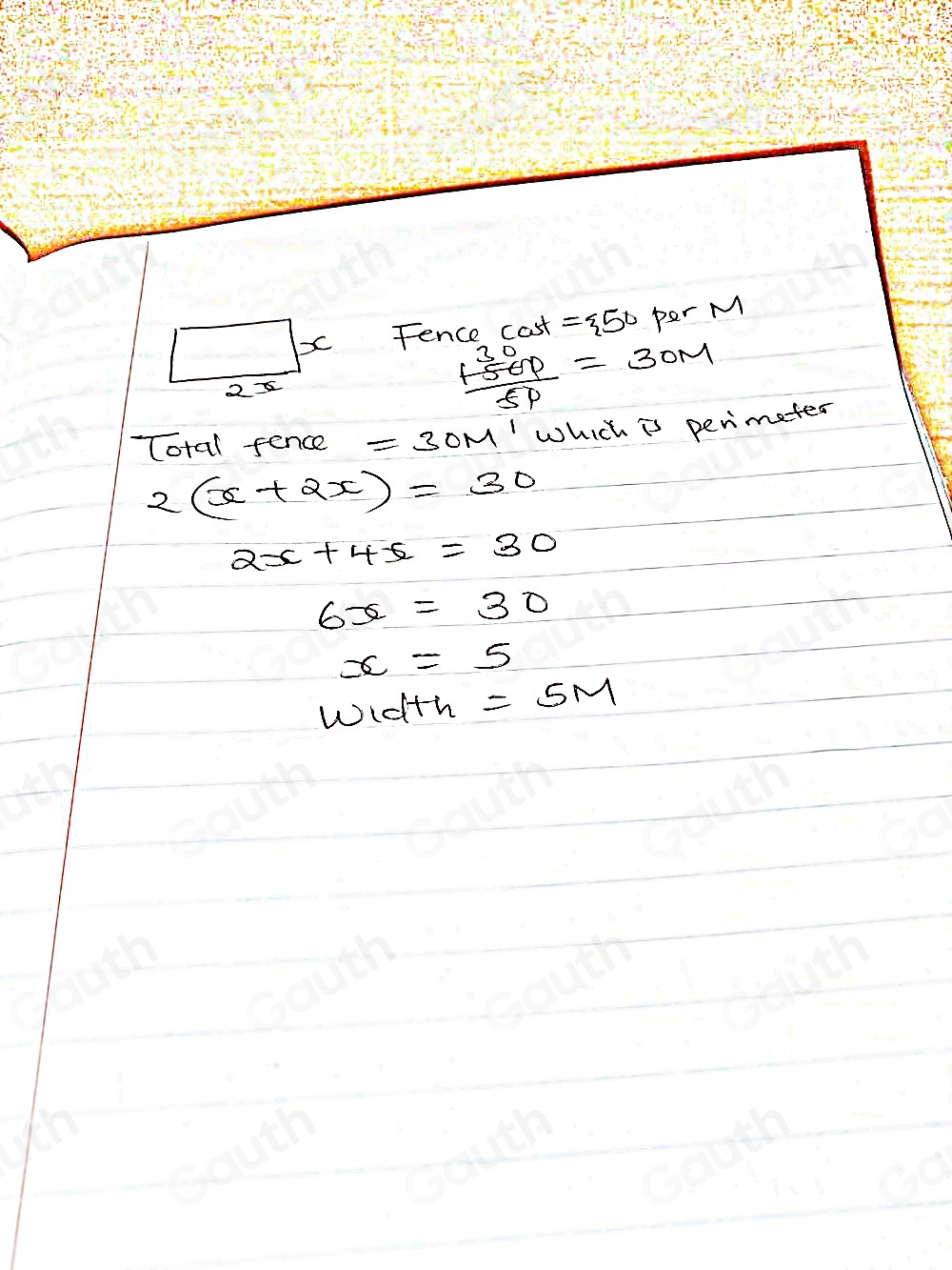 Solved: Aria has 42 m of fencing to build a three-sided fence around a ...