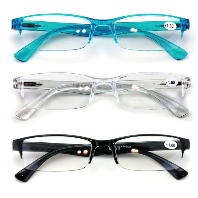 3 Pairs Half Rim Rectangular Readers With Spring Hinge - Extended ...