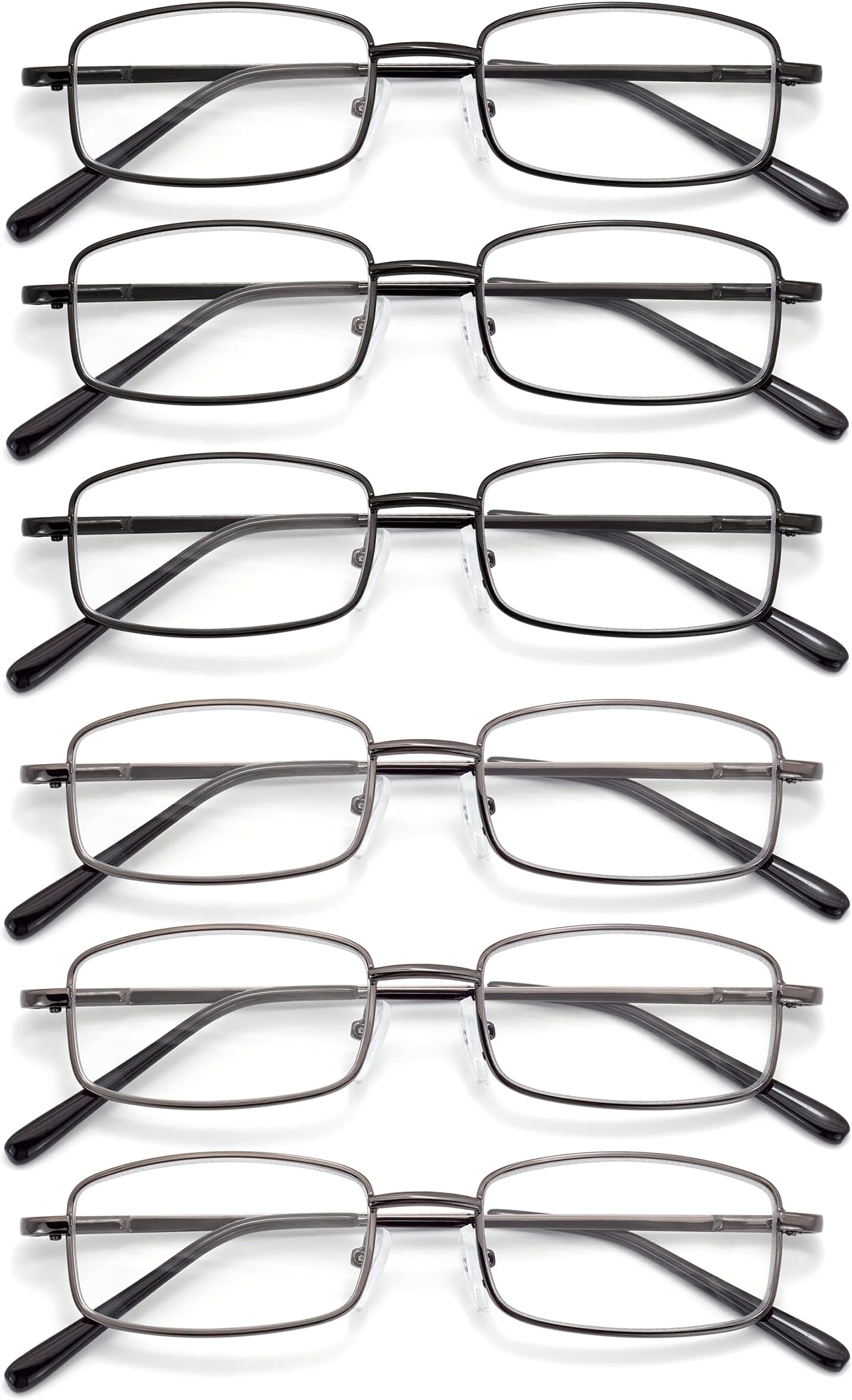 4 Pack Lightweight Metal Rectangle Reading Glasses Women Men ...