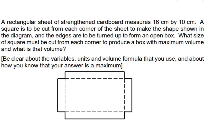 a rectangular sheet of strengthened cardboard measures 16 cm by 10 cm ...