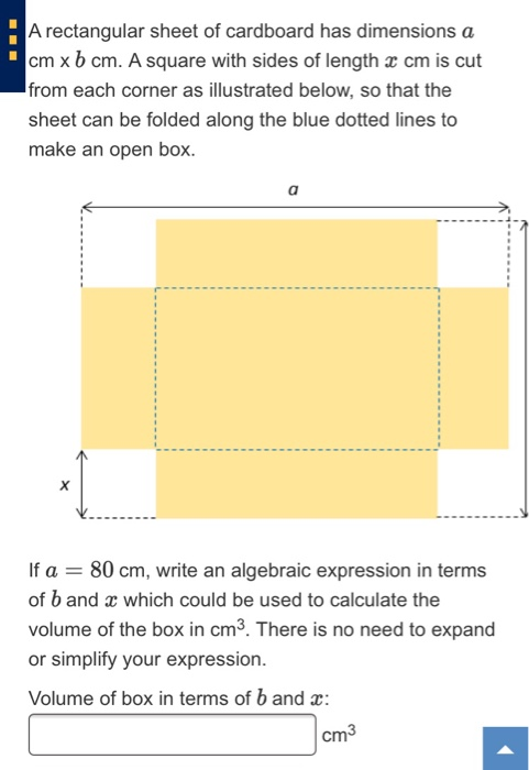 Solved A rectangular sheet of cardboard has dimensions a cm | Chegg.com