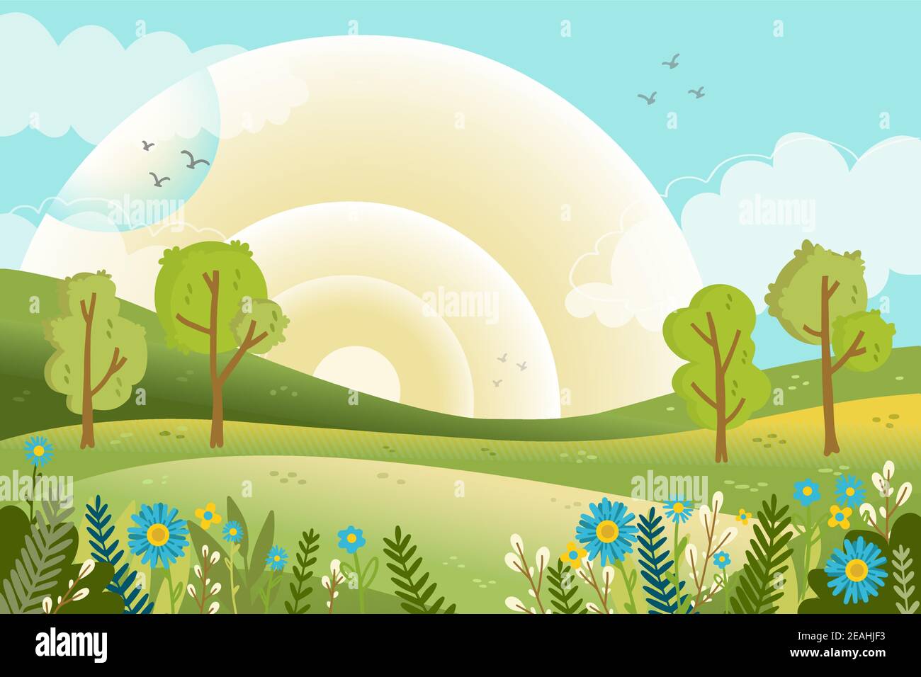 Spring landscape scene Vector illustration Stock Vector Image & Art - Alamy