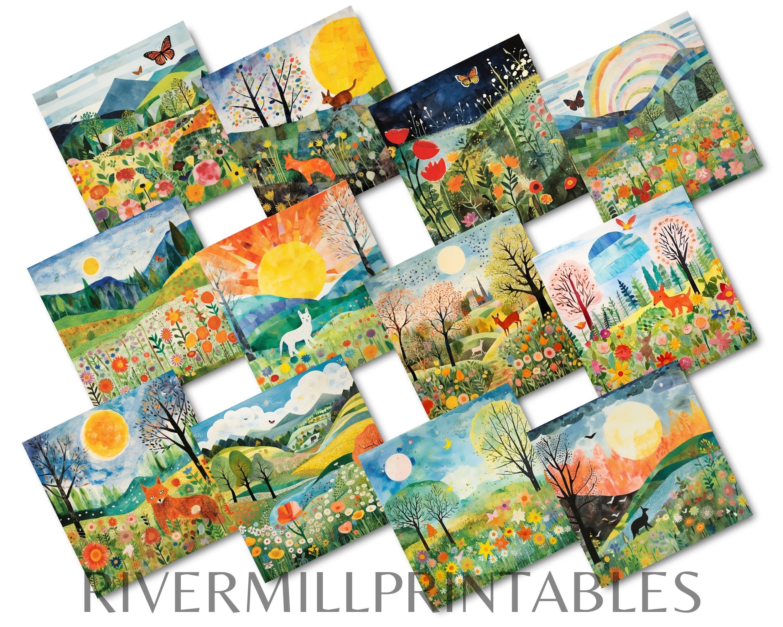 12 Colorful Spring Scenes Printable Papers, 300DPI JPG Files Digital ...