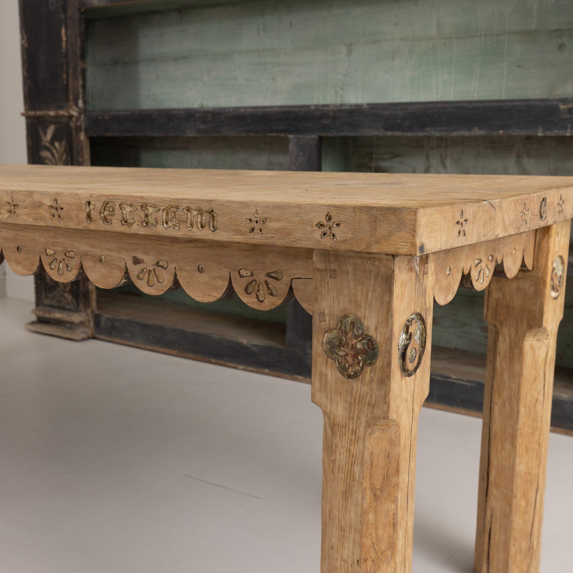 19th c. French Oak Farm Table with Scalloped Apron and Latin Carvings ...