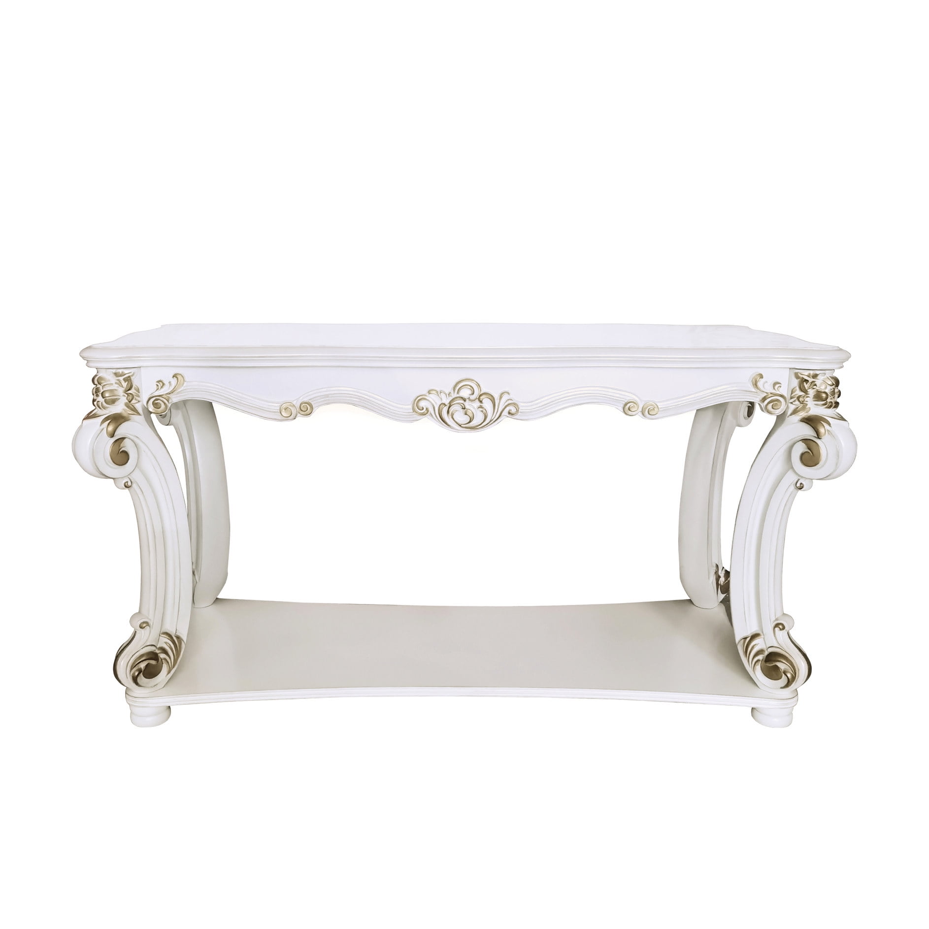 Rectangular Wood Coffee Table with Floral Trim Apron in Champagne - Bed ...