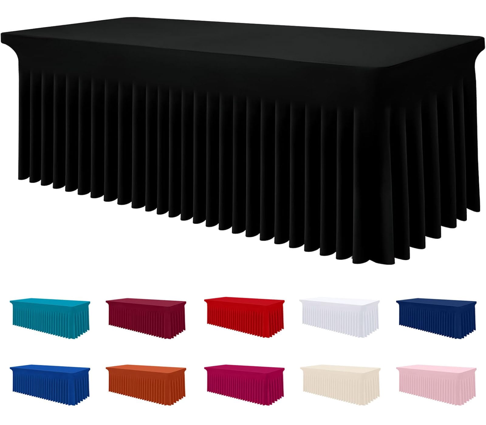 6 Ft Black Spandex Table Cover Stretch Fitted Wrinkle Resistant ...