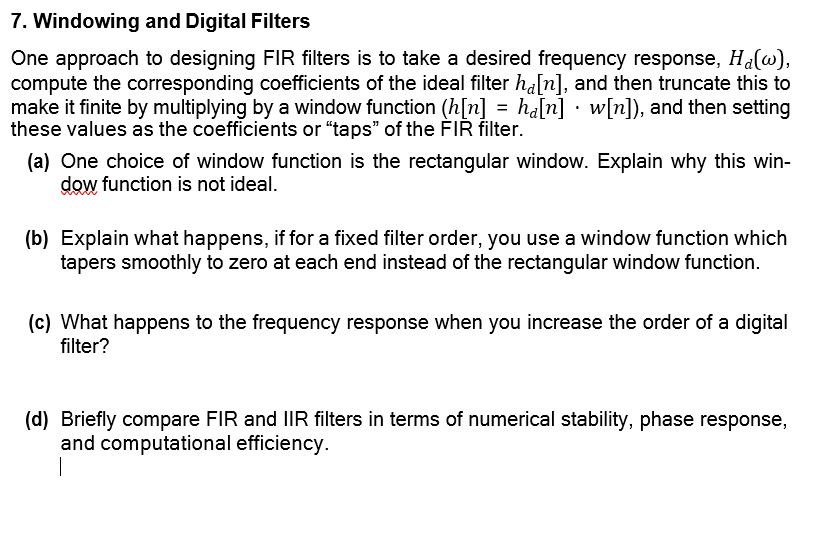 Solved 7. Windowing and Digital Filters One approach to | Chegg.com