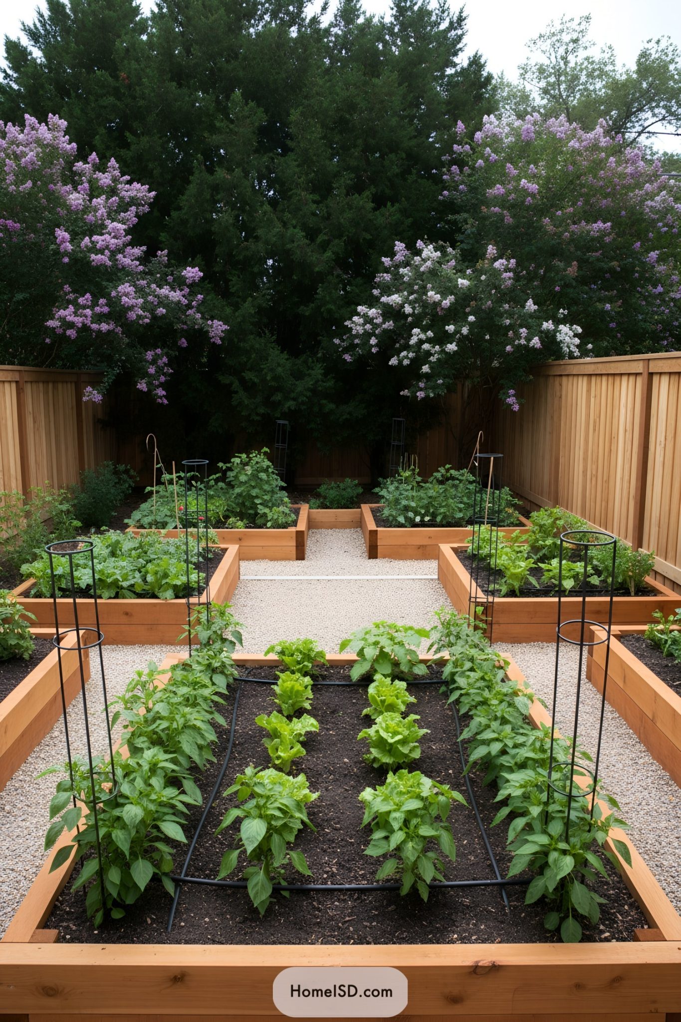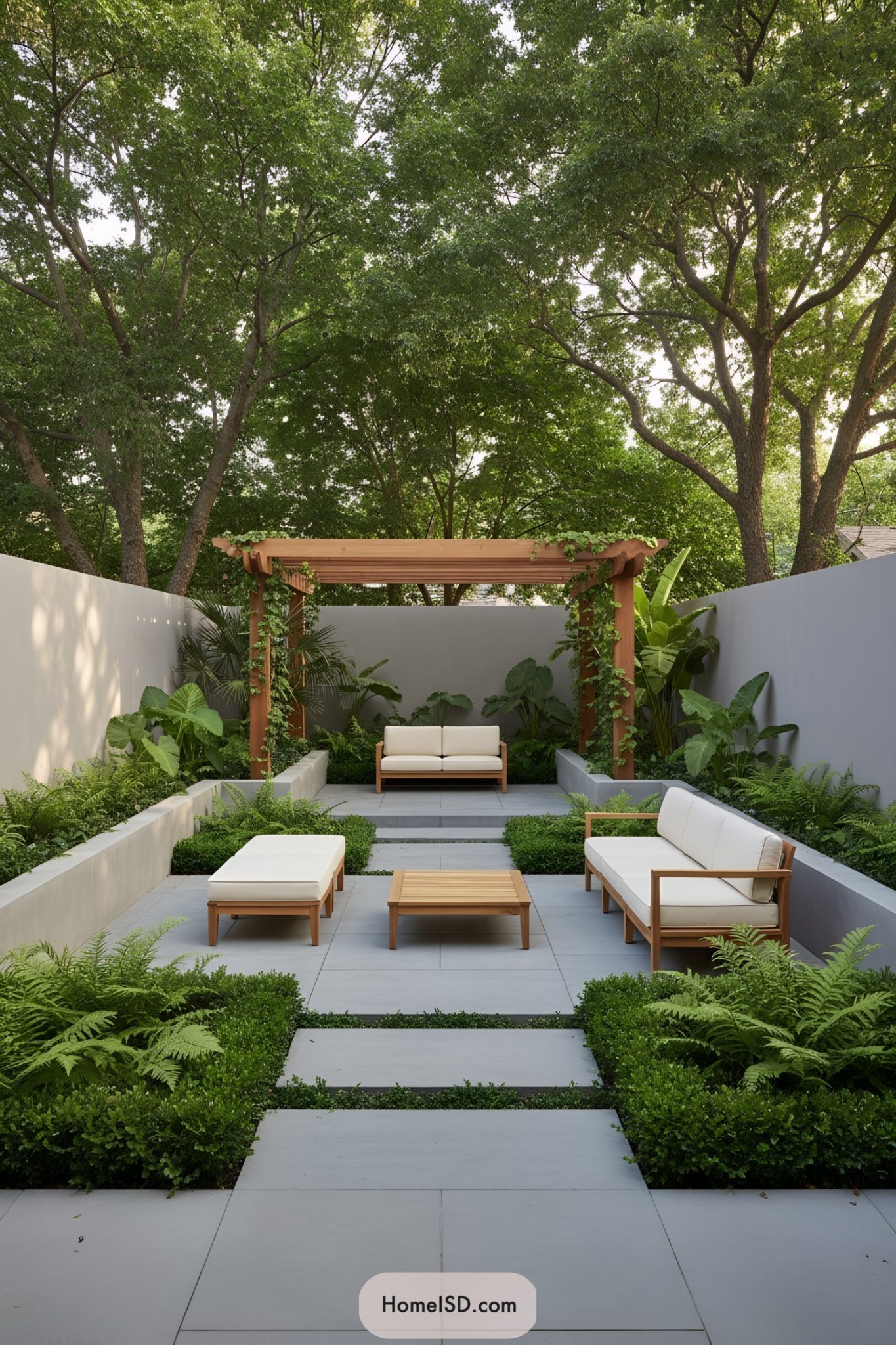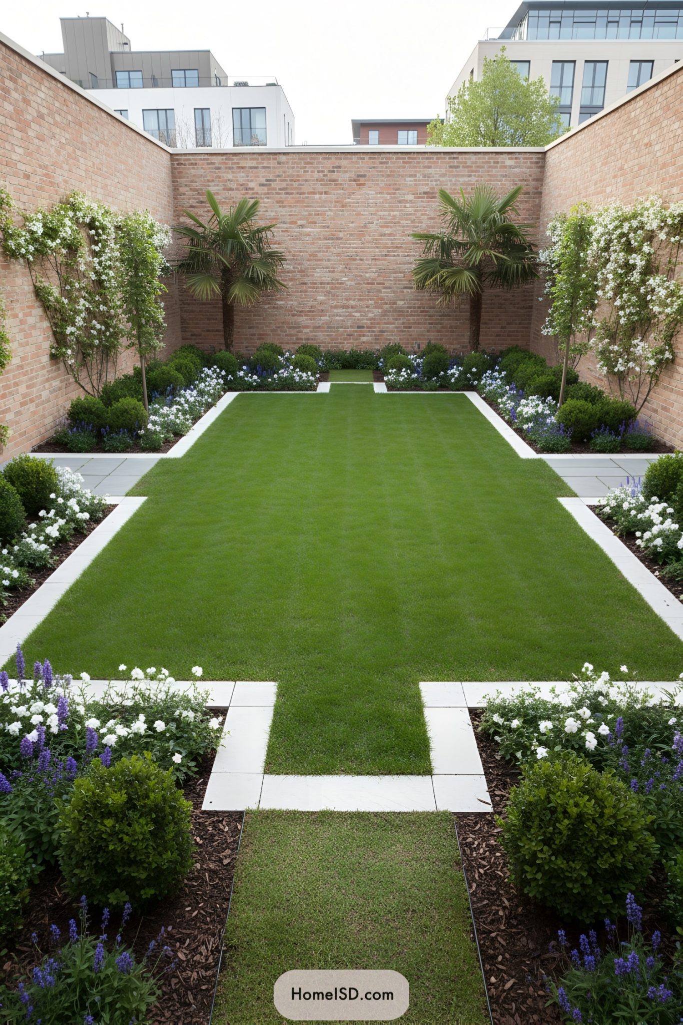 Beautiful Rectangular Garden Design with Trees and Plants