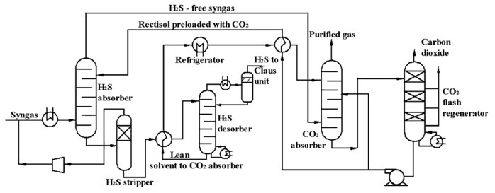 Scheme of the Rectisol system for combined H2S and CO2 separation ...