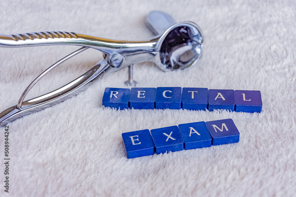 rectoscope with the words rectal exam on a white blanket Stock Photo ...