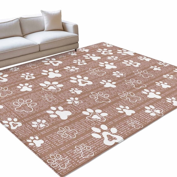 Brown Paw Print Rectangle Rug 4'x6' Modern Classic Gray White Animal ...