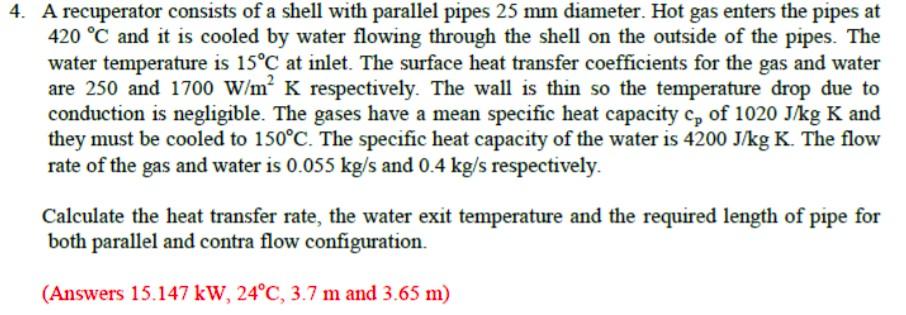 Solved 4. A recuperator consists of a shell with parallel | Chegg.com