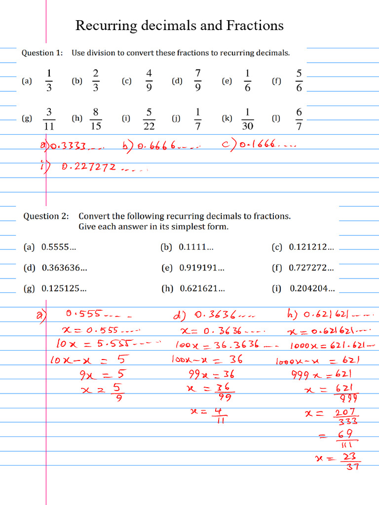 Convert Recurring Decimals To Fractions Using Algebra at Hayden Seekamp ...