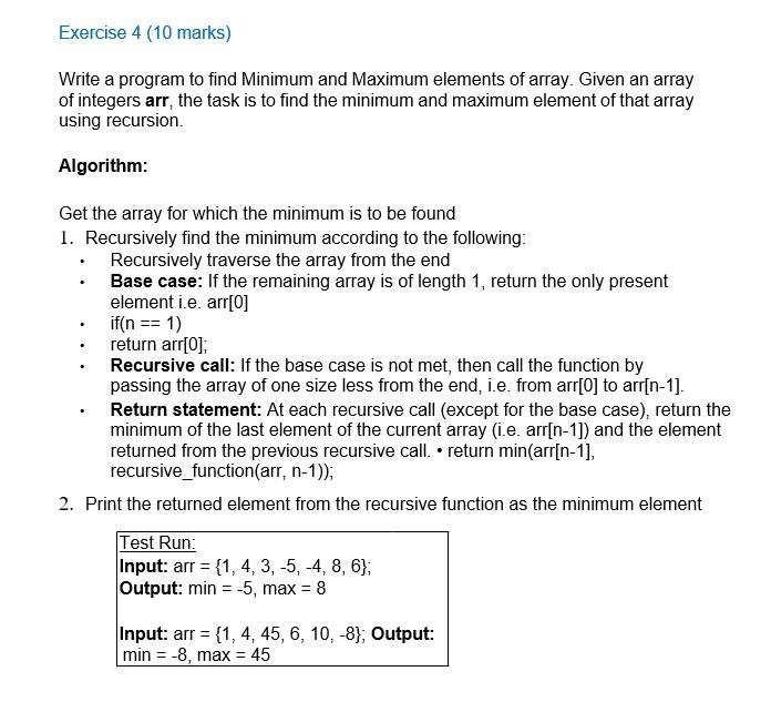 Solved using recursion. Algorithm: Get the array for which | Chegg.com