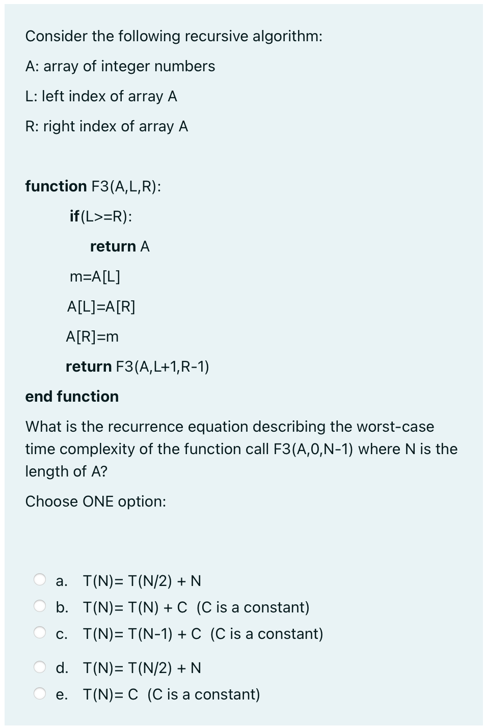 Solved Consider the following recursive algorithm: A: array | Chegg.com