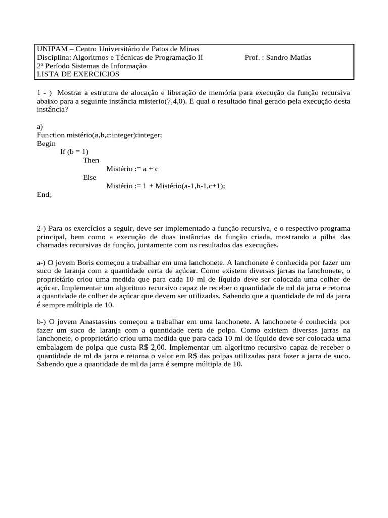 Python Recursividade Lista de Refor - o Sab Letivo2 | PDF