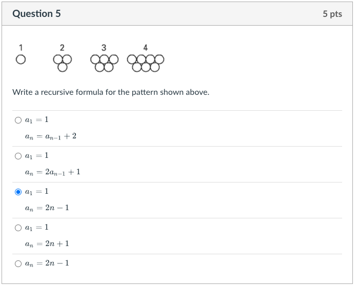 Solved: Assuming the pattern continues, what is the recursive formula ...