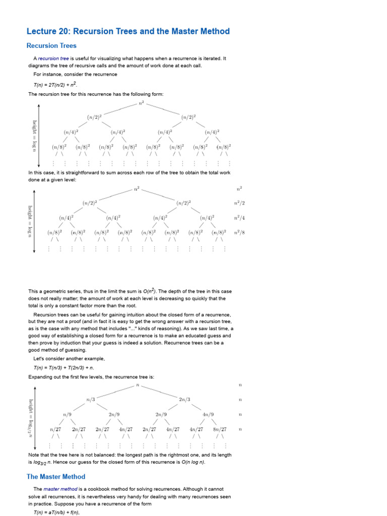 Lecture 20 - Recursion Trees and The Master Method | PDF