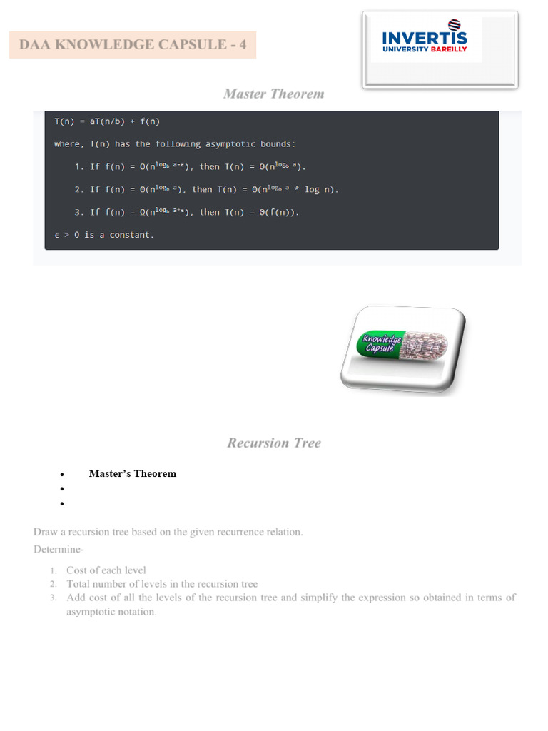 Master Theorem and Recursion Trees Explained | PDF | Theory Of ...