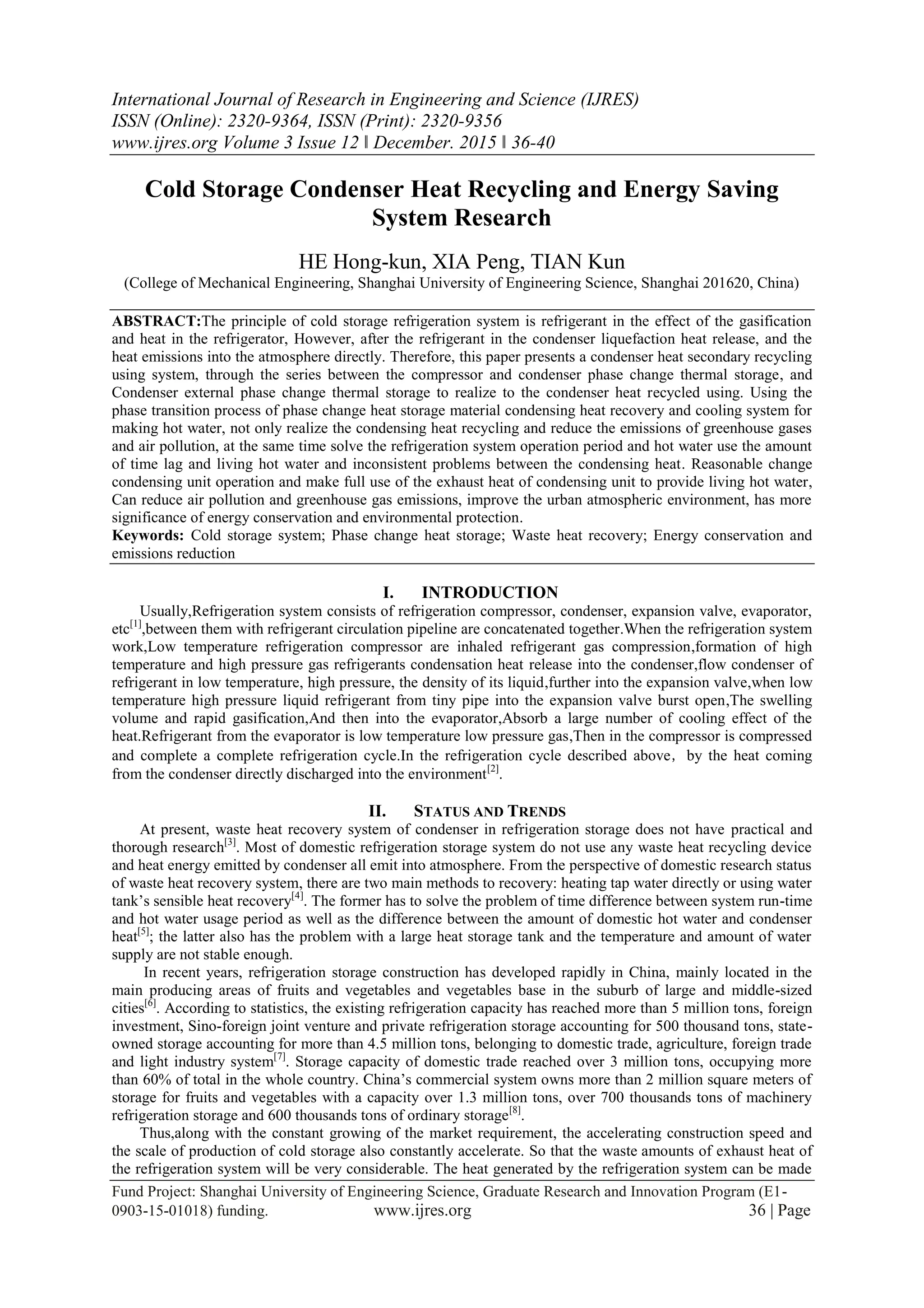 Cold Storage Condenser Heat Recycling and Energy Saving System Research ...