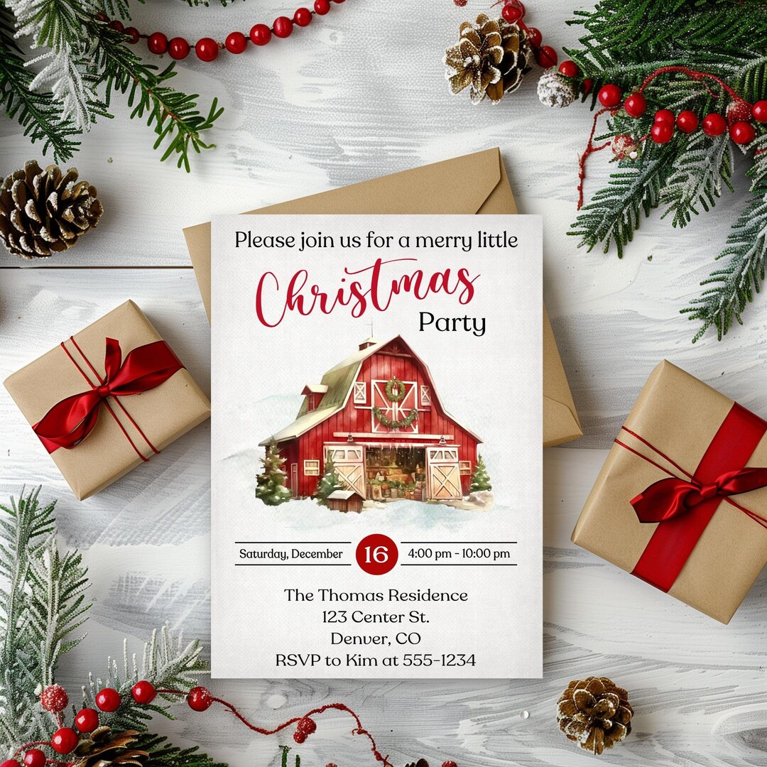 Red Barn Birthday Invitation - Farm Party Invitation - Editable ...