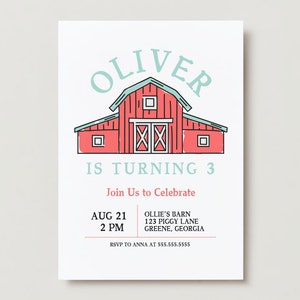 Little Red Barn Party Invitations, Kid's Farm Birthday Invitations