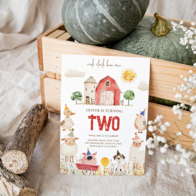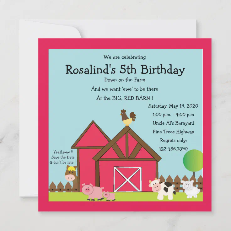 Red Barn Farm Animals Barnyard Birthday Invitation | Zazzle