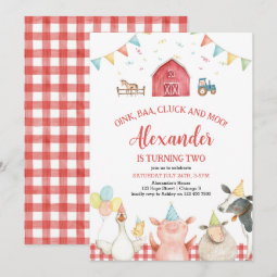 Red Barn Farm Animal Birthday Party Invitation | Zazzle