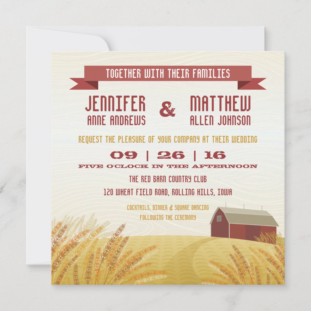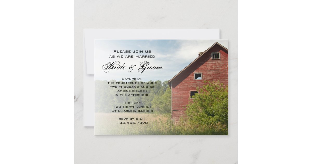 Rustic Country Red Barn Farm Wedding Invitations | Zazzle