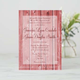 Rustic Country Red Barn Wood Wedding Invitations | Zazzle