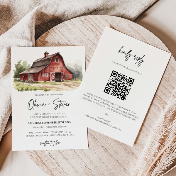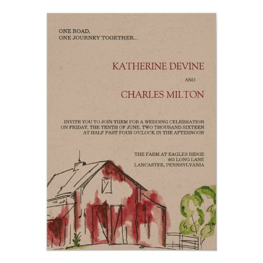 Red Barn Wedding Invitations Sample, Rustic Wedding Invitation ...