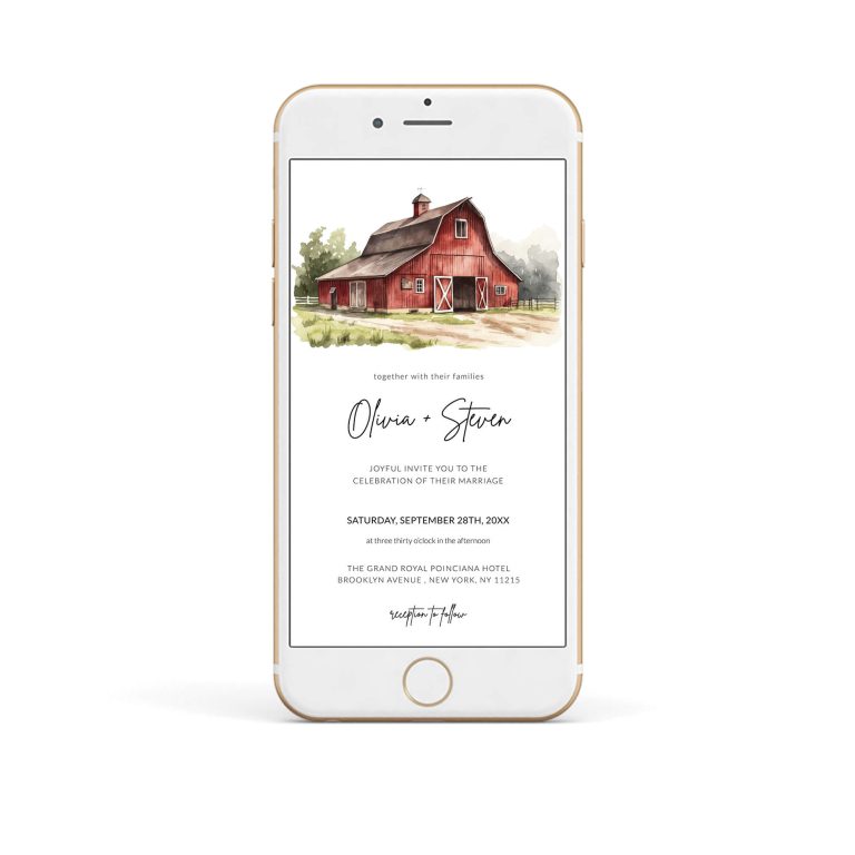 Rustic Red Barn Wedding Invitation, Printable Farm Wedding Invite ...