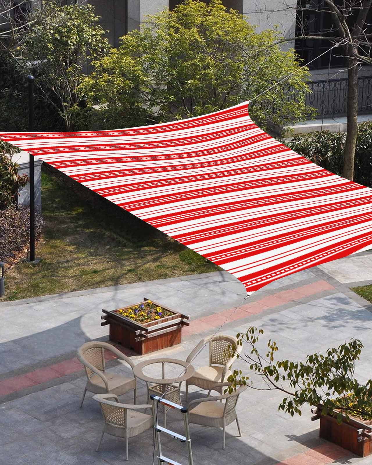 Boho Red Stripe Sun Shade Sail 14'x18' Rectangle Outdoor Shade Canopy ...