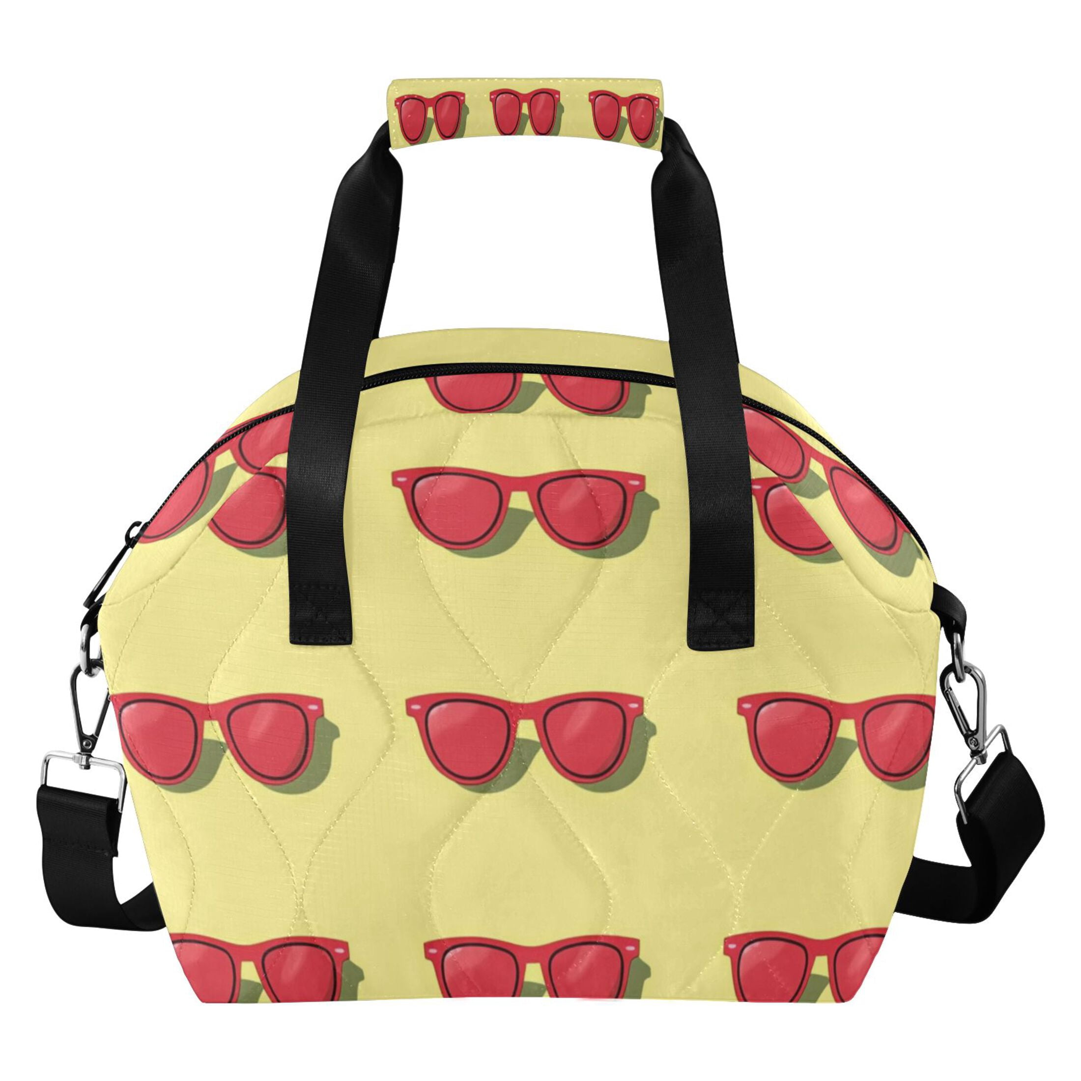 Cartoon Red Sunglasses Insulated Lunch Bag Reusable Quilted Lunch Box ...