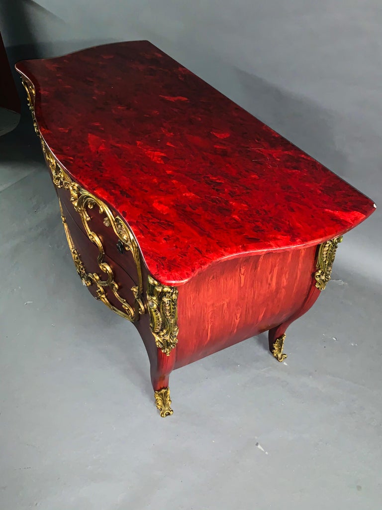 20th Century Large Louise Quinze Style Commode in Red with Ornamentik ...